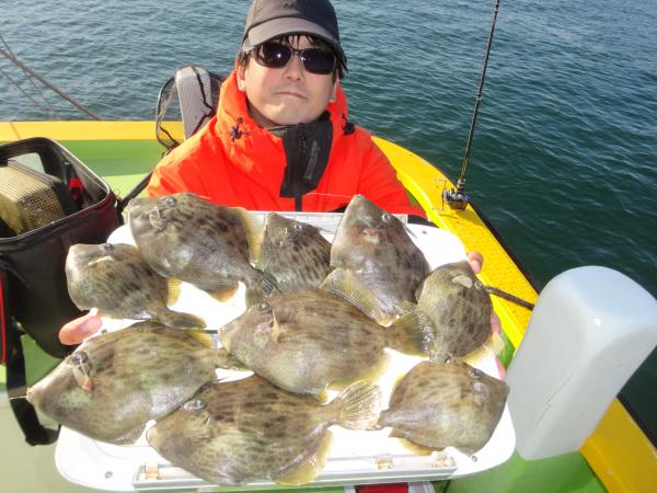 海上も朝から終日まで穏やかで、船数も少ない良い条件でしたが、今日は手強いカワハギに惨敗でした。