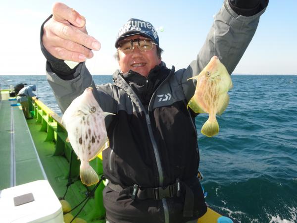 朝方はカワハギのアタリも小さく、皆さん苦戦しながら何とかポツリ、ポツリな釣れ方でしたが、ベテランの方は次第に攻略出来て来て、ポツポツ連チャン出来たりダブルの場面も見れました。
