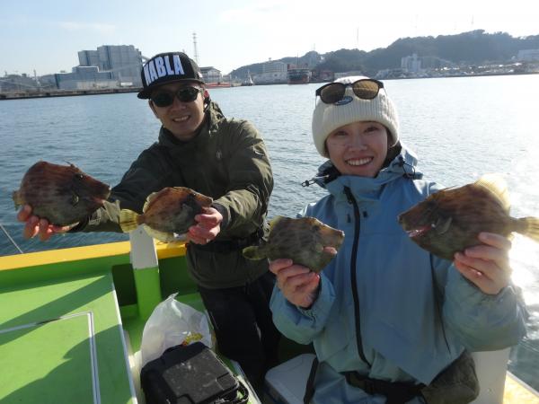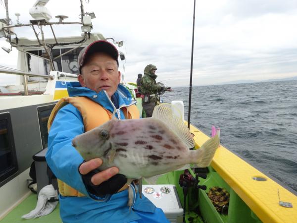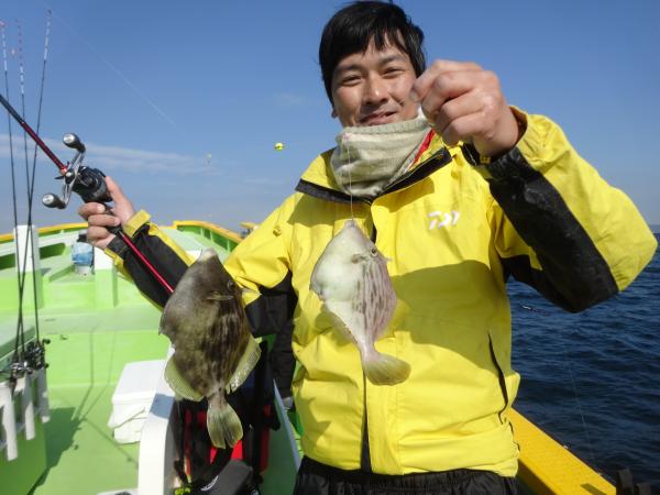 昨日より広範囲のポイントをやって行くと、良型混りで船中までアタリが届く好ポイントもありましたが、カワハギも手強い様子でエサを良く取られ、連チャンも続かず今日は何とかツ抜けに届いた釣果でした。