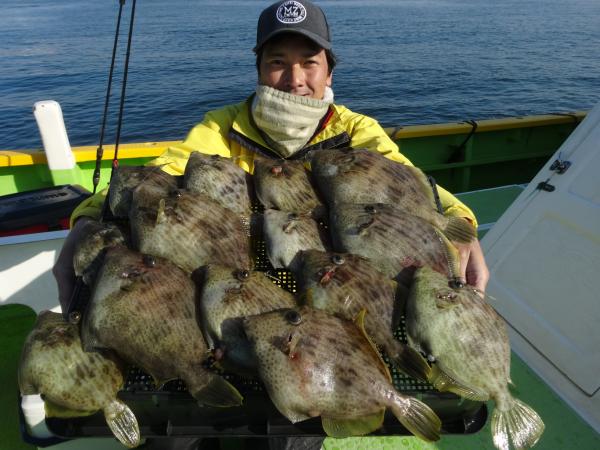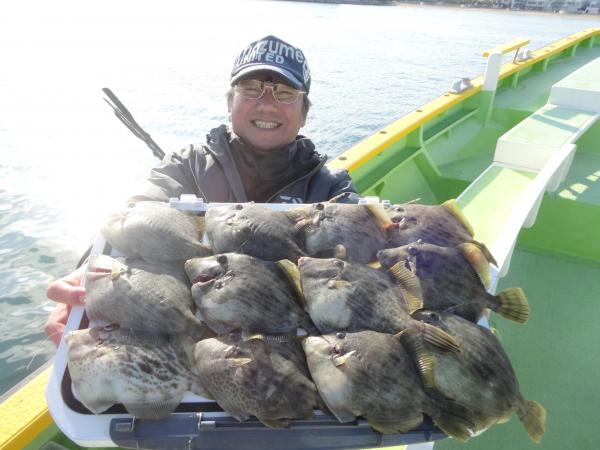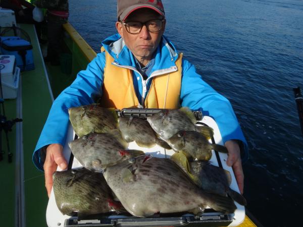 前半はアタリも良く、ツ抜け達成の方が続出しました、期待を膨らませて後半も…でしたがフグの邪魔が増えてカワハギの勢いが失速してましたが、ポツリ、ポツリ追加出来て、久しぶりに沢山の方が10枚越えの好釣果に持って行けました。