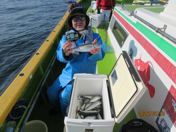 今日の竿頭は、迷人会会長の菅原さんが胴の間ポジションでもダブルを決めながら数を伸ばして17枚の好釣果、次いで9枚が3名…と続きました。