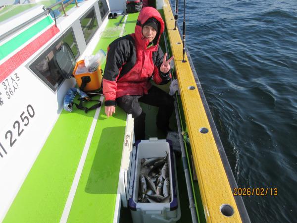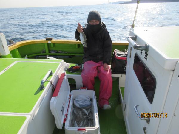 今日は14名様で出船出来たので、割り当ては厳しめでしたが、各ポイントを回りながら良型混りで船中ポツリ、ポツリ釣れて、好ポイントではダブルや短い連チャンも出来てました。