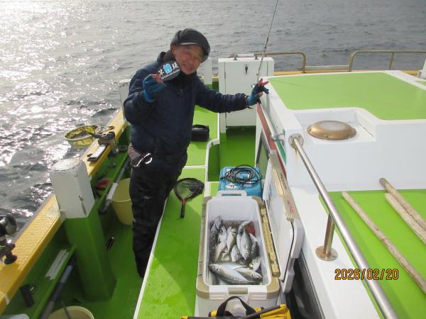 北風が少し強めで多少ガチャガチャした海上でしたが、朝方はモーニングサービスで早々に1枚、続いてポツリ、ポツリと船中で釣れて手慣れてない方や女性の方も1枚…2枚と良いスタートでした。