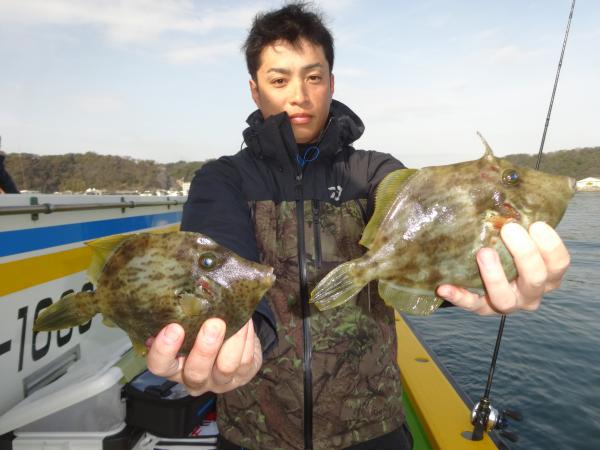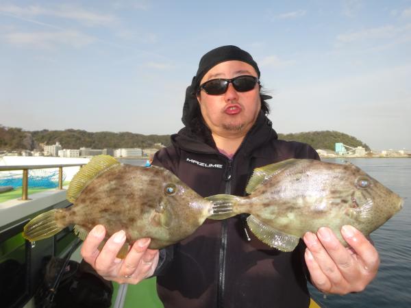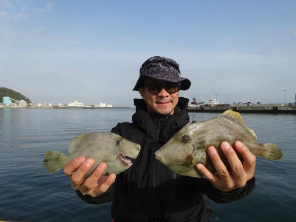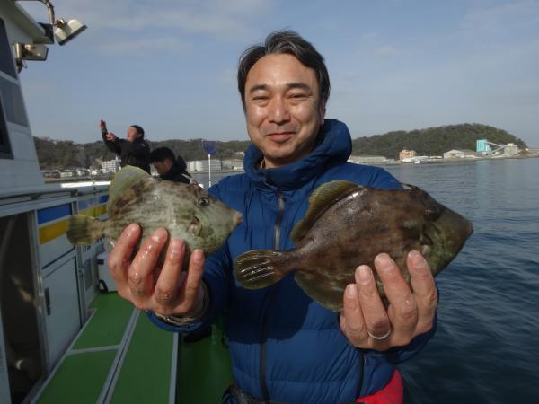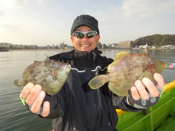 朝方に強めだった北風も次第に穏やかになって、釣れるカワハギのサイズも殆どが20cm以上の良型に25cm以上の大型もポツポツ混って、手慣れない方達にも良く釣れてました。