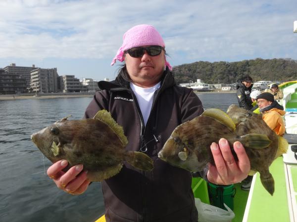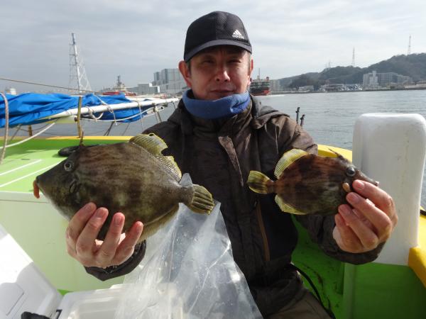 今日、初挑戦の女性の方もレンタル竿で大型カワハギとパンパンに太ったウマヅラをゲット出来ました。