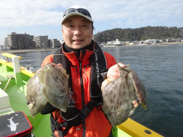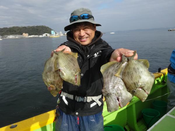 釣れたカワハギは良型が中心でしたが、トップは田中さん5枚、林さん4枚、もう一方が2枚でした。
