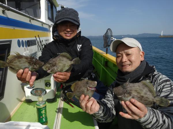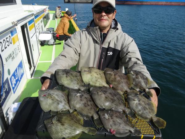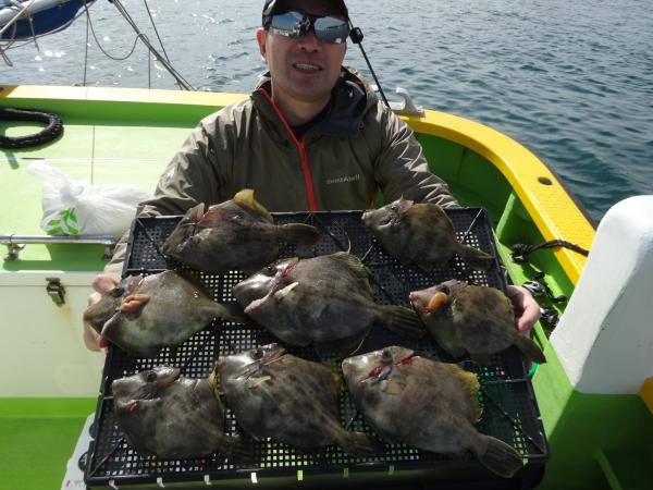 トップは大須賀さんが14枚の好釣果、次いで千葉さんも10枚の大健闘、9枚の方も居てカワハギ釣りもようやく春の兆しが出て来ました。