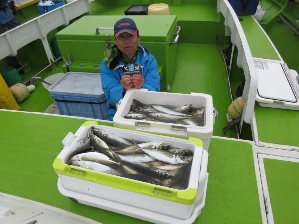 トップは久々に参上の名手.菅澤さんがクーラー満タンの25枚の好釣果、次いで大沢君も絶好調22枚、更に21枚、20枚…と続く大漁デーでした。