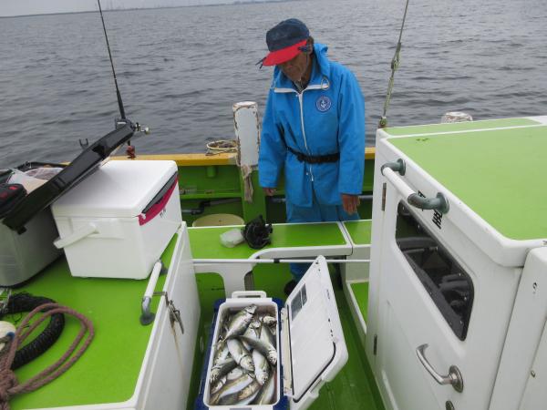 今日は出船時には雨も上がりましたが、午前中は北風が強目で多少ガチャガチャした海上でした。