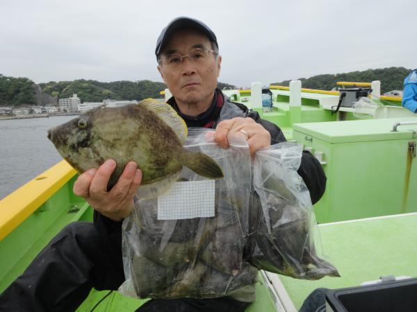 今日のトップは、久里浜沖から鴨居沖のコースをやってた別船に乗ってたカワハギ狂会会長の岡本さんが、得意のコテ宙が炸裂して25枚の断トツ釣果でした。