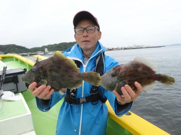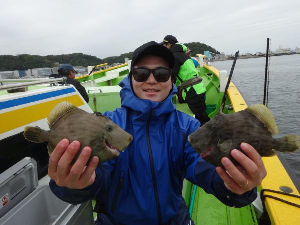 カワハギのアタリはポイント次第で、好ポイントの筋を流れると大型混りで船中バタバタ釣れて、手の合う名手は2連チャン、3連チャンと熱い展開でした。