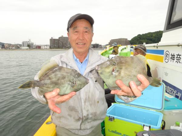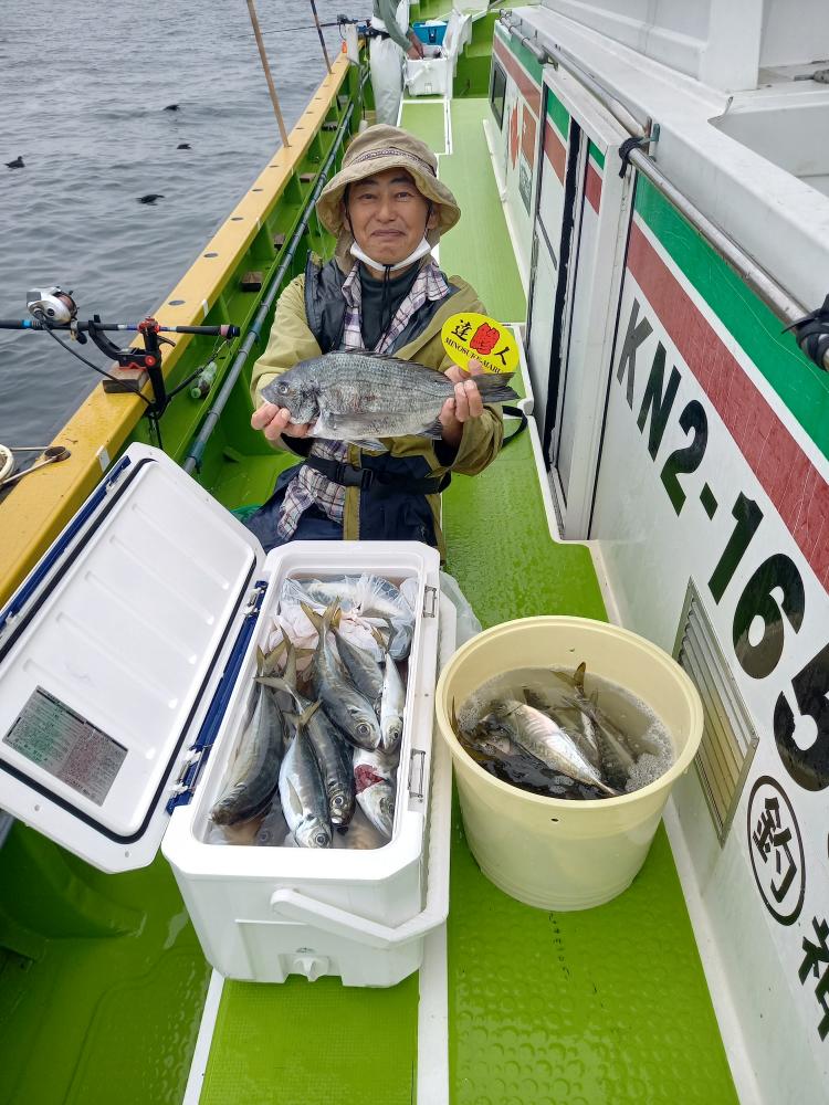 今日は乗合船と、常連さんグループ迷人会の仕立船と2隻で鴨居沖から下浦沖までやって行きました。