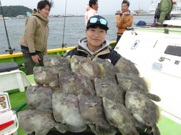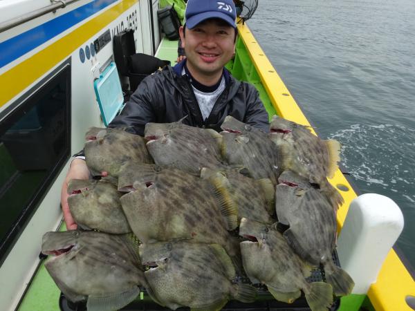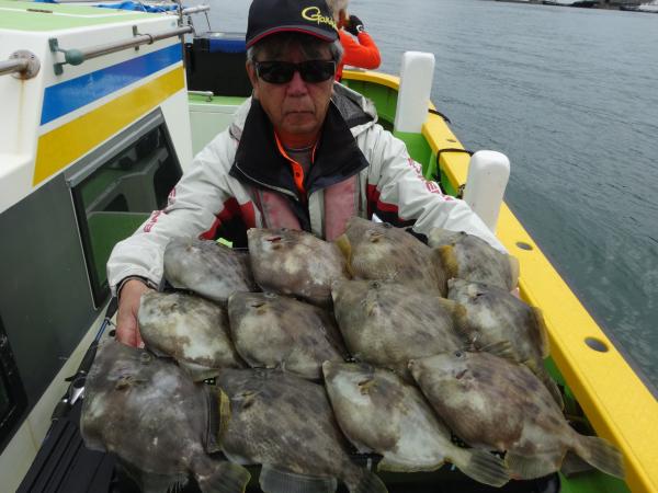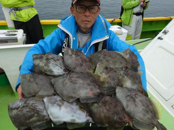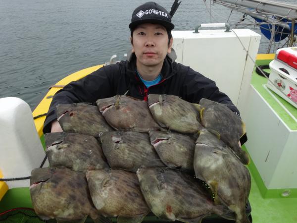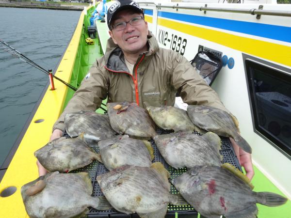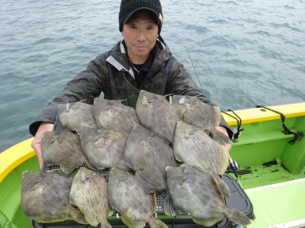 次いで鈴木さん12枚、他の方も尺ハギ混りでツ抜けまで後少しの釣果でした。