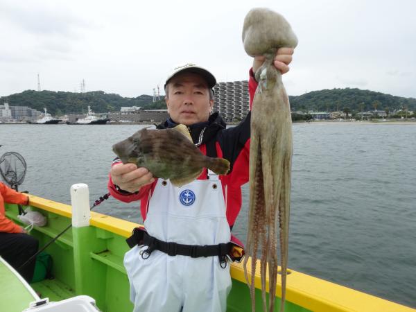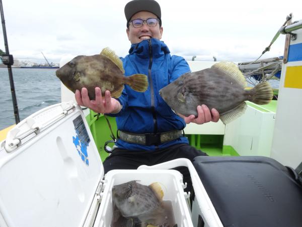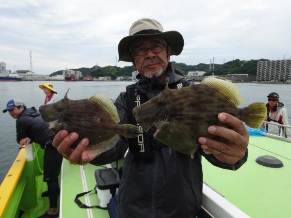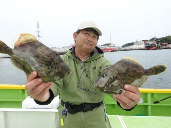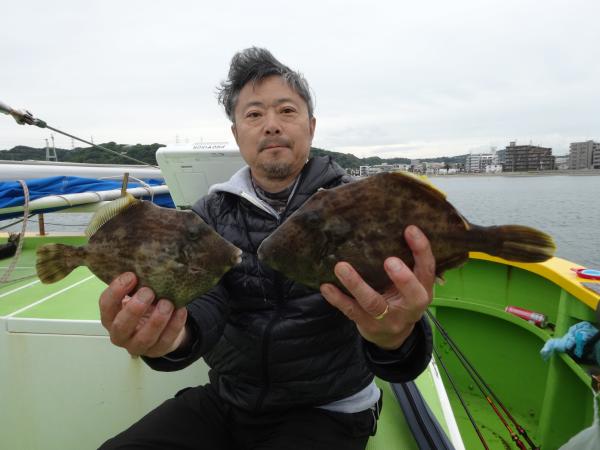 今日も全般に潮が濁ってたので、本調子の活性では無かったと思いますが、空模様は日射しも出て明るかったので、良型カワハギ中心にポツリ、ポツリ釣れてました。