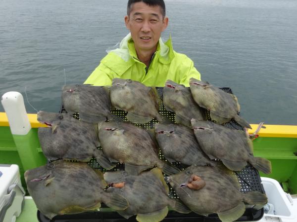 今日は久しぶりに20枚の大台に乗れました、トップは久しぶり参上の佐藤さんが良型揃いの21枚の好釣果、次いで大西さん13枚、中野さん12枚、10枚と続き、裾の方でも5枚ゲットの大健闘でした。