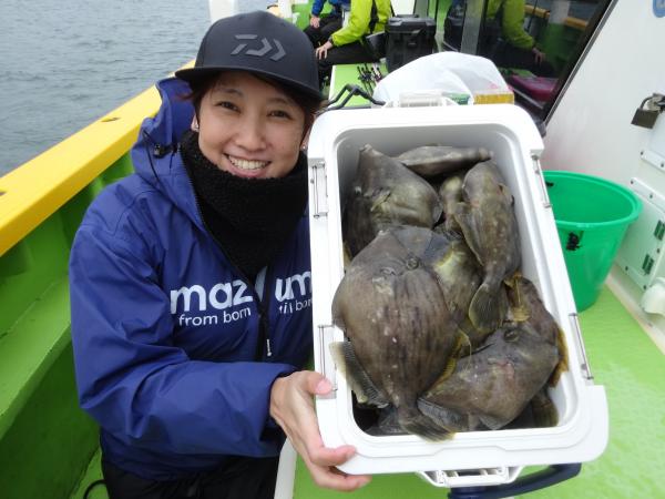 カワハギの活性は良く良型中心に、大型も32cmの大物もゲット出来て、船中でポツポツ釣れました。