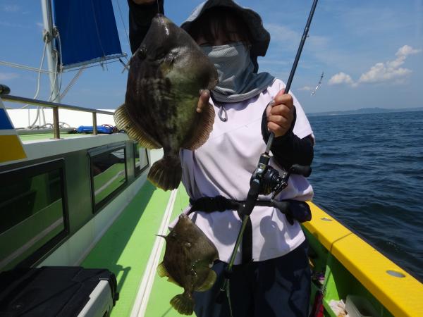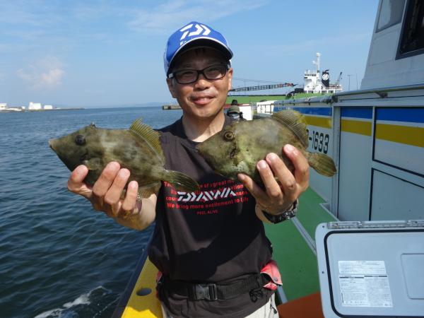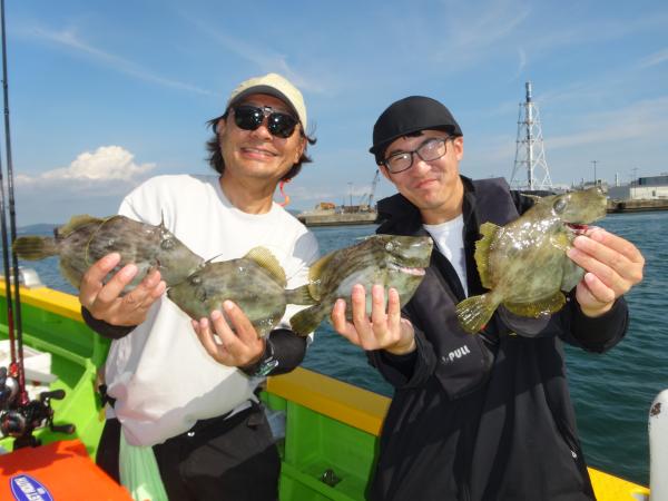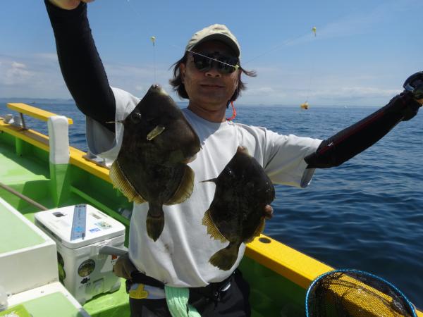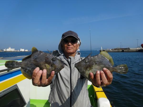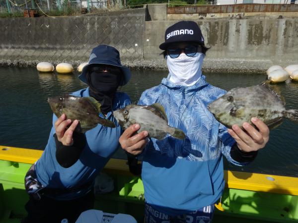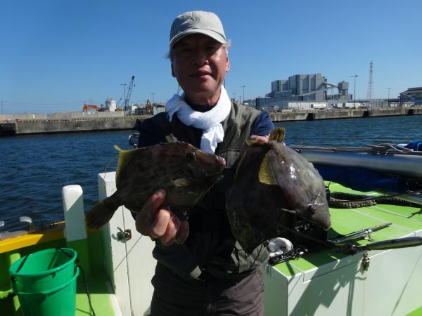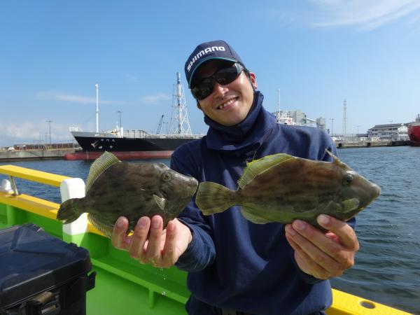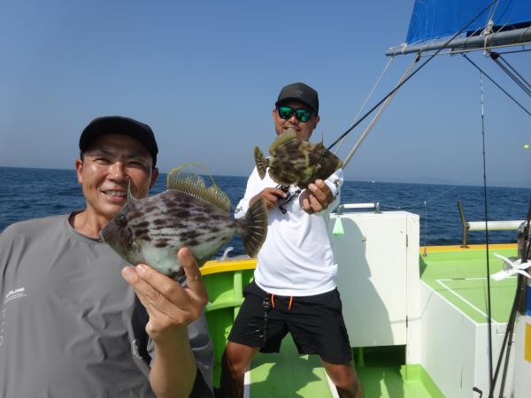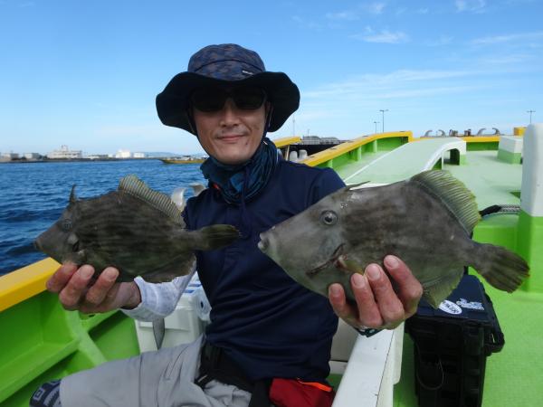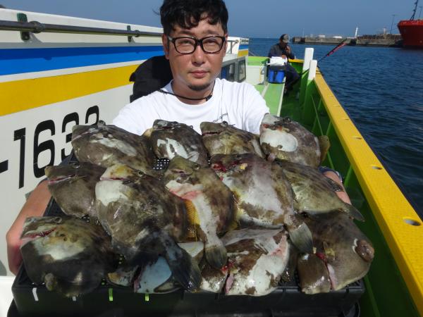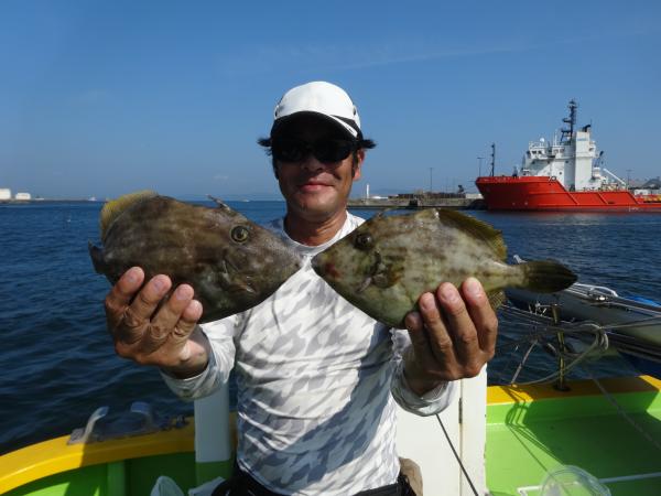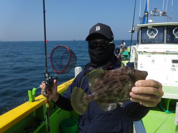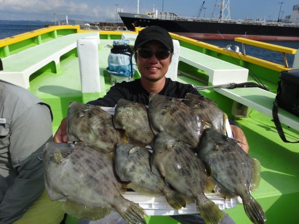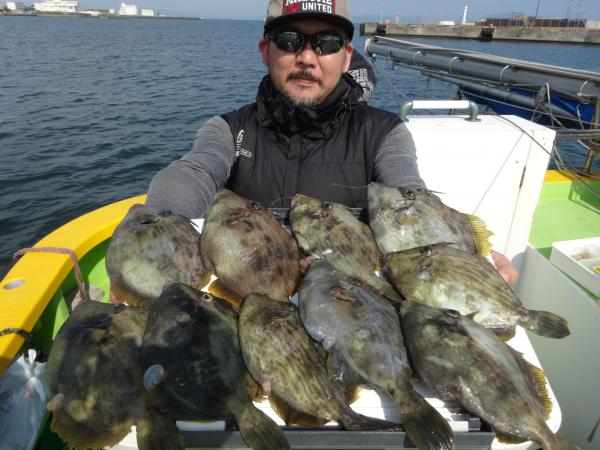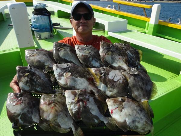 前半は手堅く船中ポツリ、ポツリ釣れるポイントで粘って、良型中心に尺ハギも数枚ゲット出来ました。