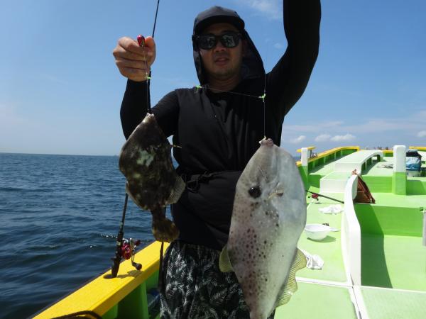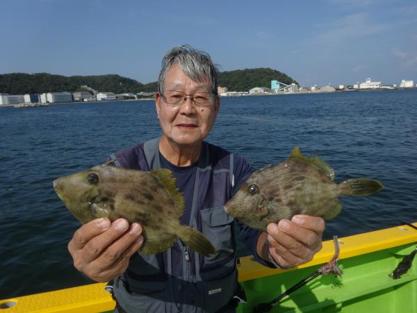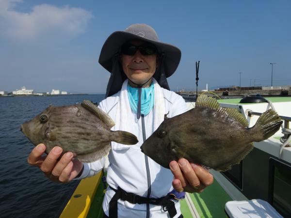 途中、今日も更に浅場に足を伸ばして群れを探索しましたが、今日はチビハギに出会えず良型カワハギが数枚ずつでした。