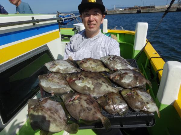 それでも10名全員が良型中心にゲット出来て、トップは峰岸さんが10枚と良型マゴチのお土産、次いで7枚が鈴木さん他3名と続きました。