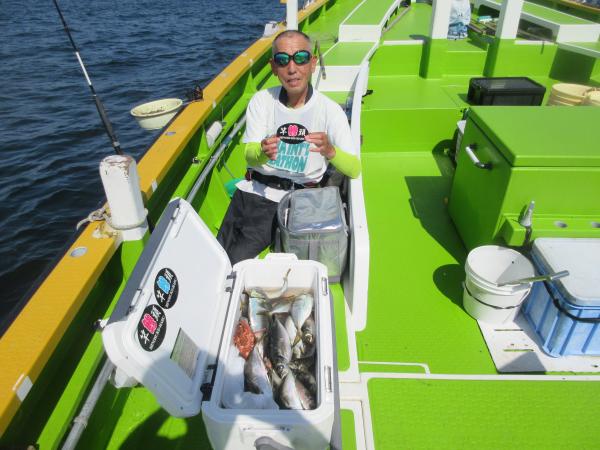 気が付くと剣崎沖に残ってる船は、私だけになってましたが、穏やかな波陰のポイントでアタリも続いたので、定刻まで剣崎沖を楽しんで貰えました。
