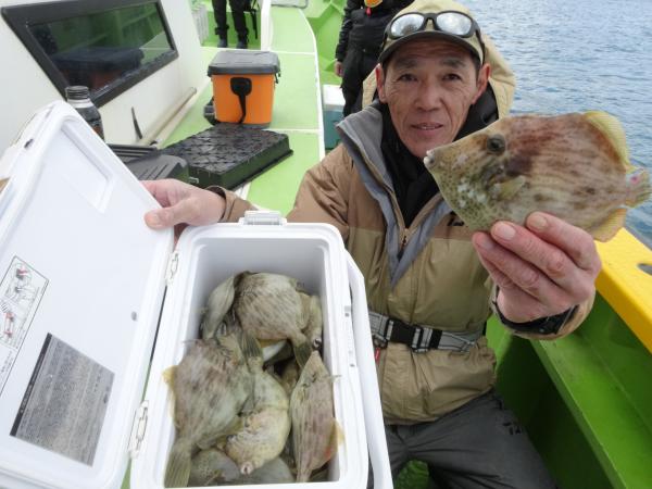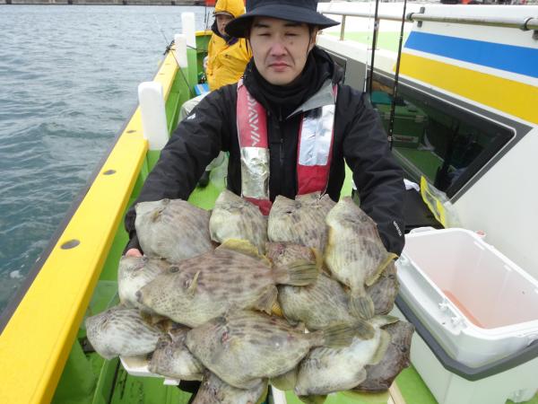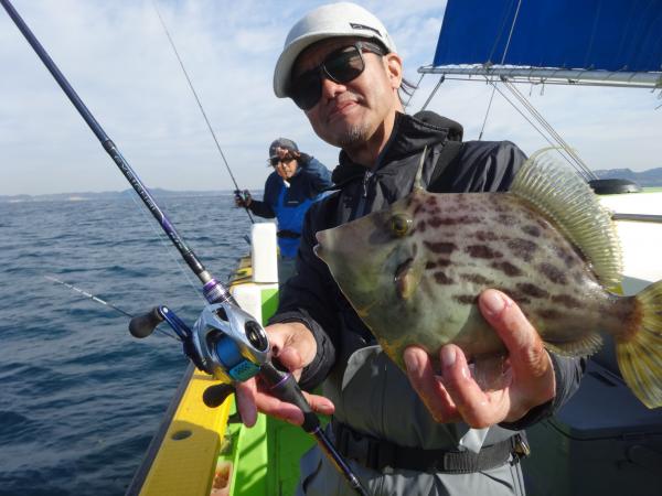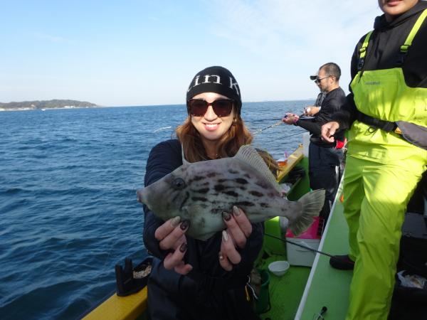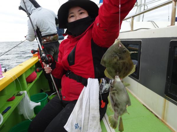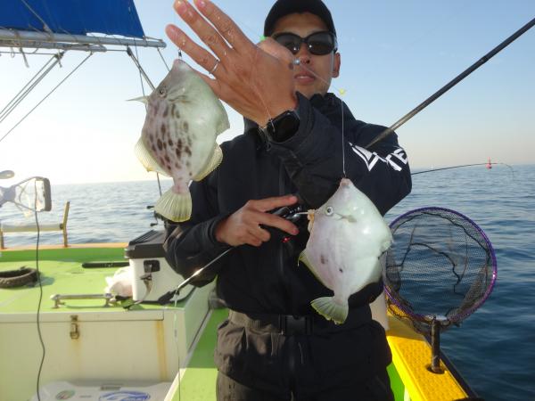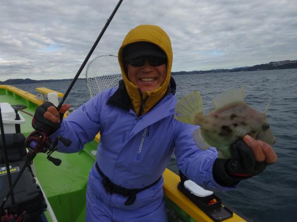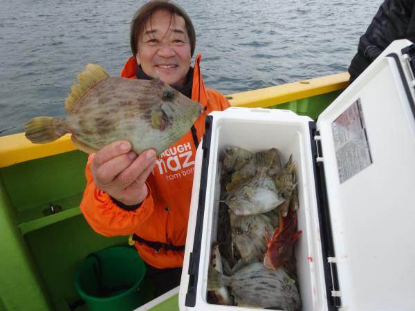 初挑戦の女性が尺ハギゲット出来たり、良型を混えながら船中でポツポツ釣れました。