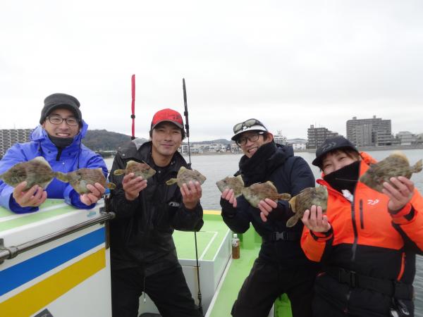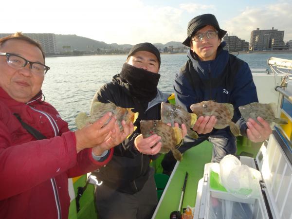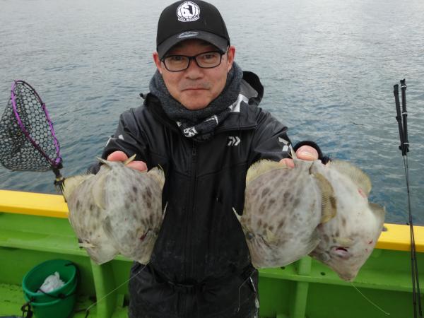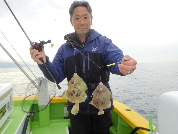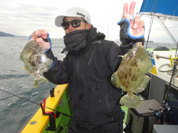海上も一日穏やかで、今日もスタートの着底から直ぐにアタリが出て1枚、また1枚…と船中ポツポツ始まりました。