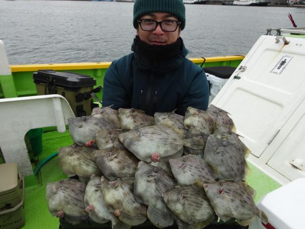 3隻の釣果でトップは、名手.佐藤さんがダブルや連チャンの凄腕炸裂で48枚の大漁、次いで伊藤さんも33枚、もう一人の佐藤さんも僅差の32枚と続き、20枚越えの方も全船合わせて多数となる好釣果な一日でした。
