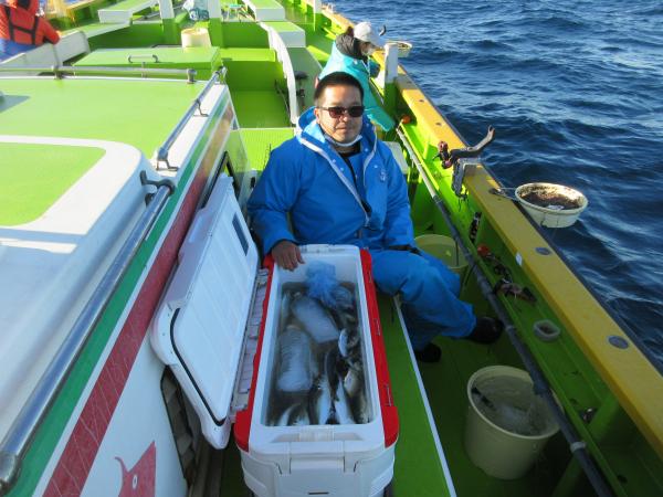 今日のトップは、名手.加賀谷さんがダブル3回決めて38枚の大漁、次いで岩松さんも連チャン炸裂で34枚の好釣果、別船もビック池田さんが28枚と好釣果続出でした。