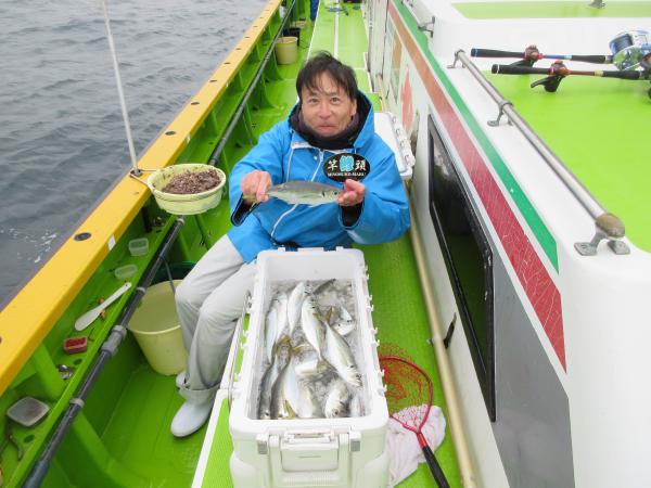 今日のトップは昨日に続き連日乗船頂いた名手2名が今日も活躍して、青木さんが27枚、次いでビック池田さんも僅差の26枚、私の方はエース池田君が21枚、萩原さん20枚と続き、今日も沢山の方がツ抜け以上の好釣果でした。