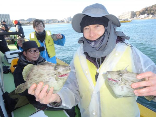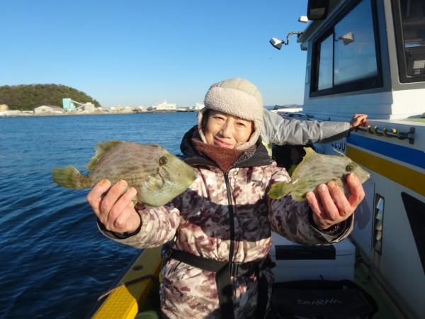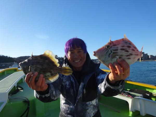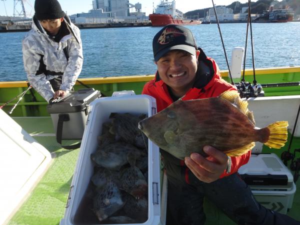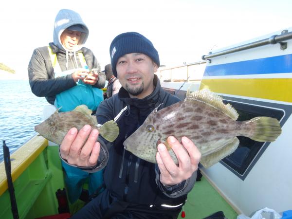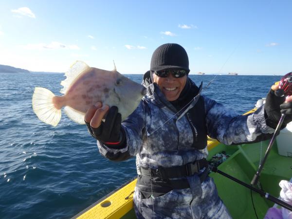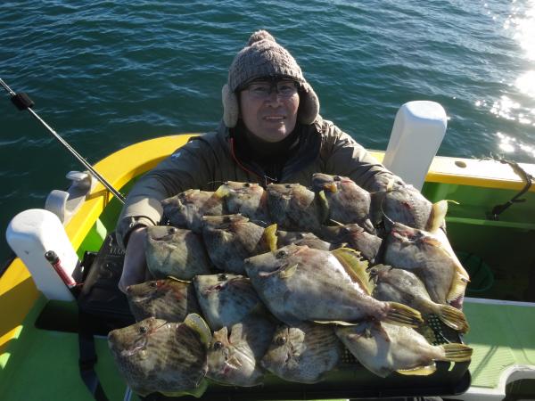 今日も20m前後の浅場ポイントをやって行き、シケ後の高活性と水温16℃の良い潮でカワハギのアタリも良く、大型も最大31.5cmや31cmと大物混りで、多くの方が25cm以上の大型をゲット出来ました。