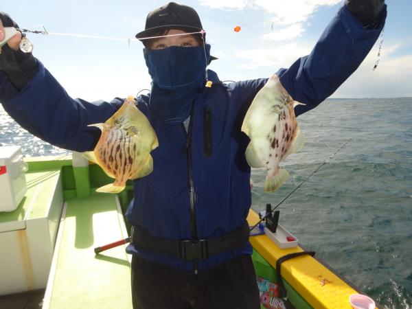 それでもカワハギは今日もスタートの着底からポツポツ釣れて、連チャンも始まりましたが、風向きが悪い為に好ポイントに止まって居られず、連チャンも早めに途切れてしまいました。