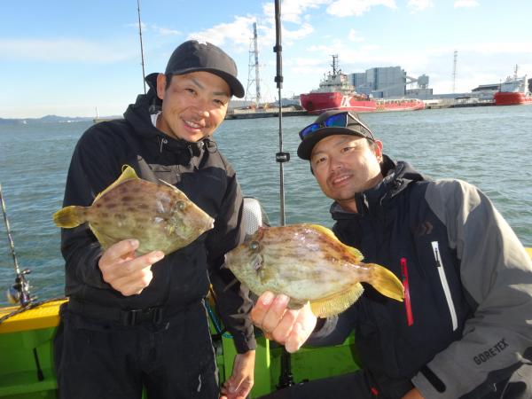 トップはカワハギ狂会会長の岡本さん海のコンディションの悪い中で33枚の大漁釣果、別船トップは24枚、次いで土田さん23枚…全体で15枚以上の方も多数の好釣果でした。