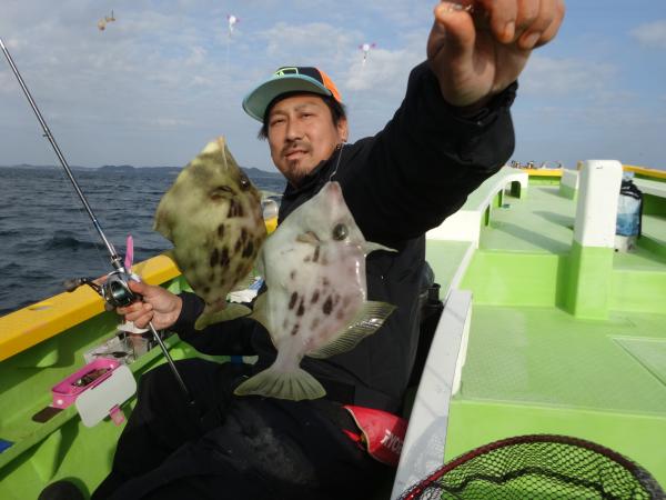 昨日に続き穏やかな海上で、潮の流れも前半の下潮、後半の上潮が共に程良い流れで、カワハギ釣りには良い条件でした。