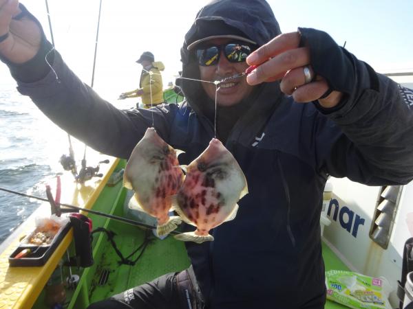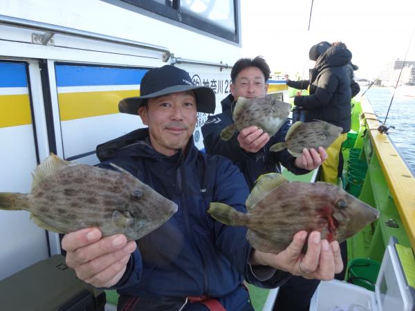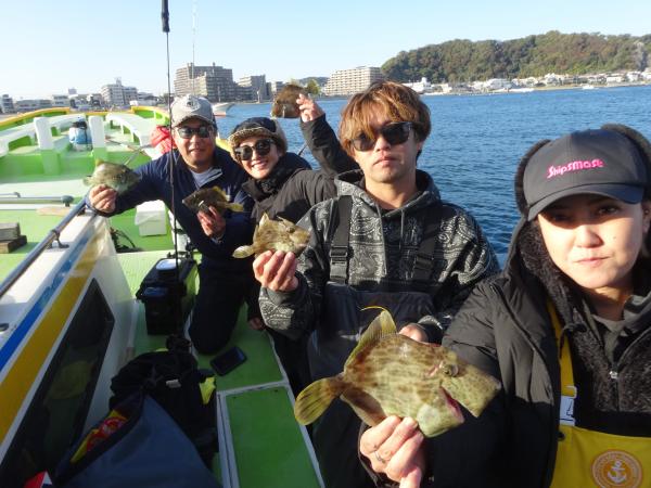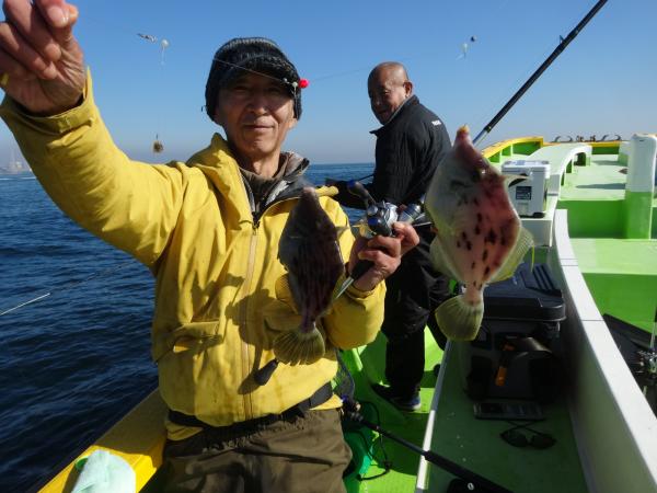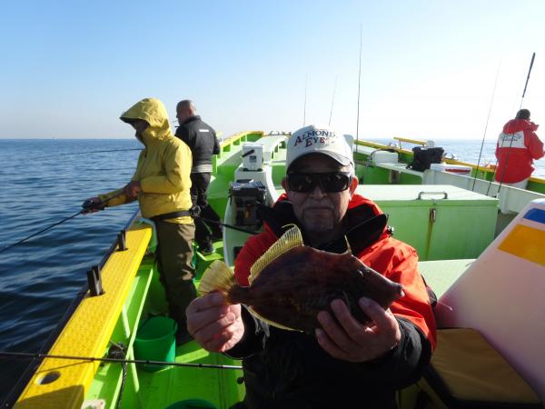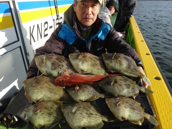 それでも、泣き尺サイズを一人で複数枚ゲットの方も居て、鴨居沖と同じレベルの肝パンパンカワハギのお土産を皆さん沢山ゲット出来てました。