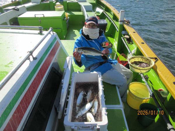 朝から潮色が急に澄んでしまい、その潮を嫌ってしまい大苦戦でした。10時ごろからようやくアジも落ち着きポツリポツリ釣れだしましたが、今度は予報通りの大風となってしまい、厳しい状況の中、12時の沖上がりとなってしまいました。