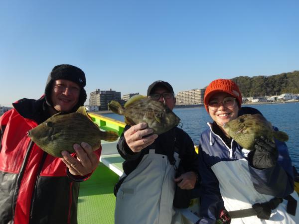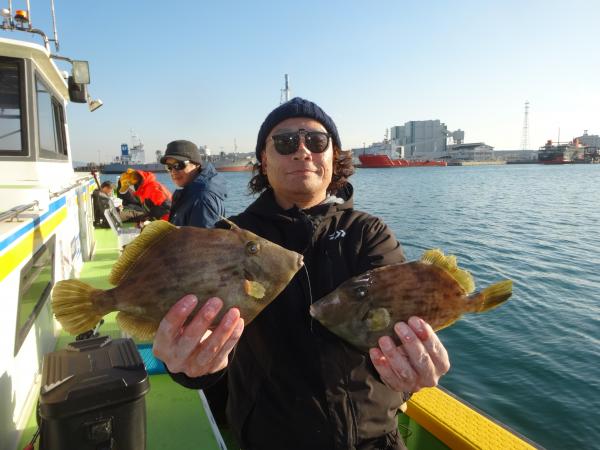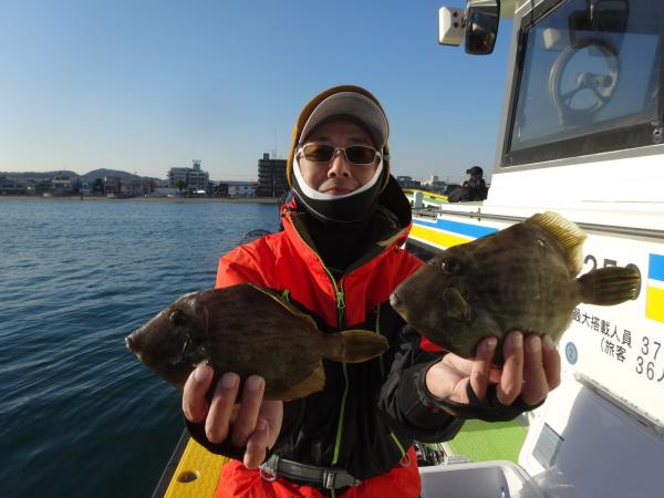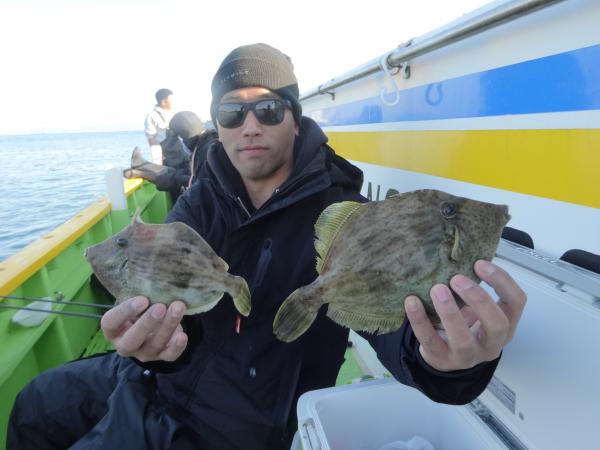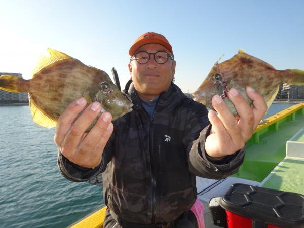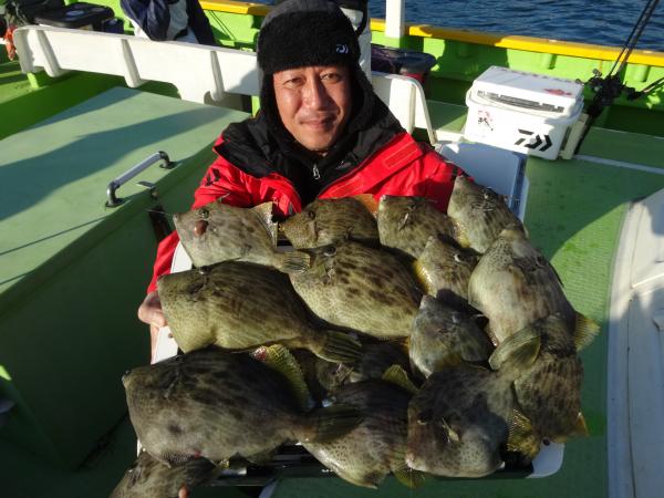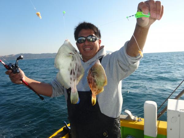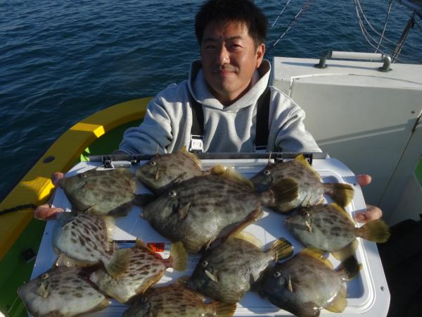 潮が時間帯によって澄んだり、薄濁りの潮が被ったりと安定しなく、カワハギのアタリも朝方は大型を船中ポツポツ混えながら釣れてました。